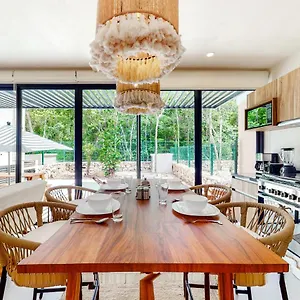 The 2-bathroom villa is set about a 10-minute drive from Parque Nacional de Tulum.